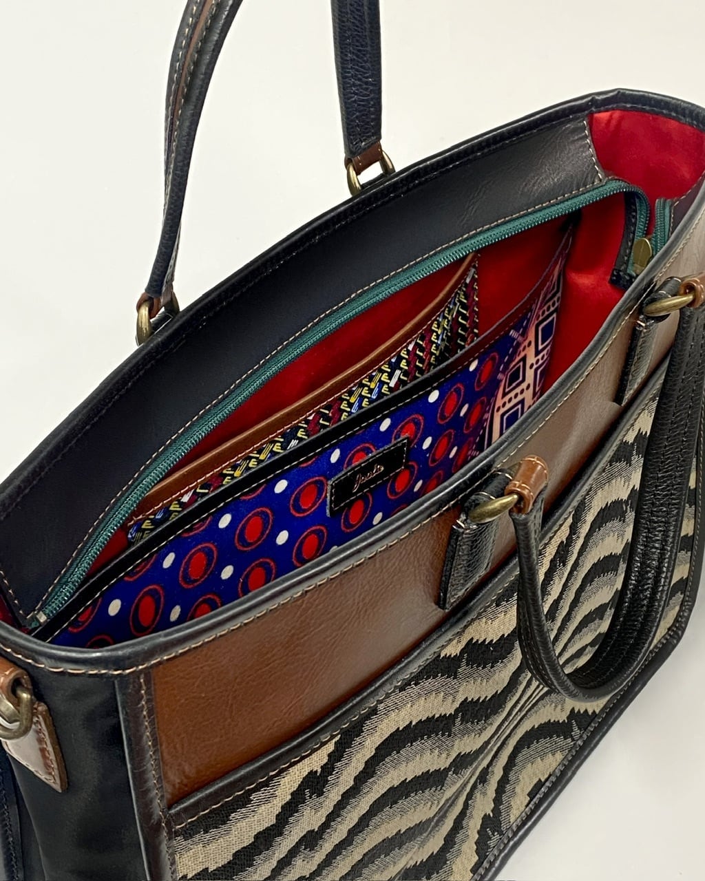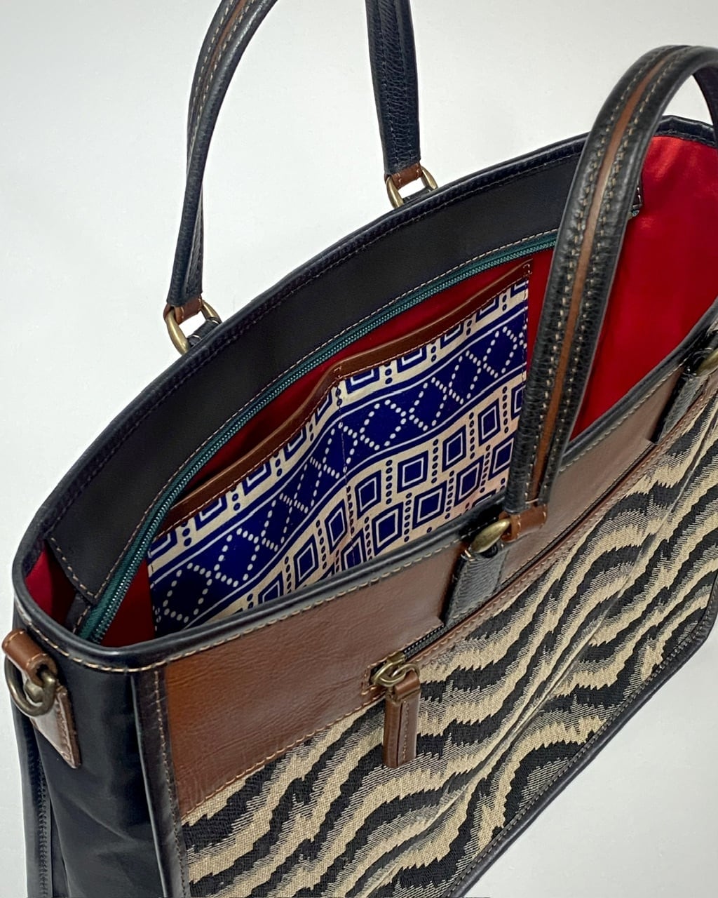 内側には小物ポケットの他に書類用のポケットもあり様々な荷物を収めやすい仕様になっています